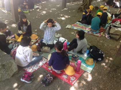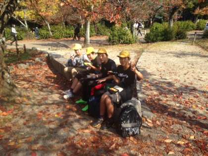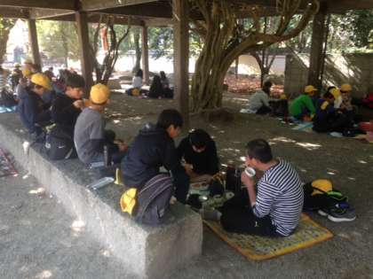 6年生が、社会見学で京都に来ました。見学の前に、昼食を取りました。