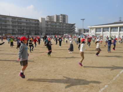 なわとび週間の最終日は、天気がよく寒さも少し和らいで、子どもたちは、力いっぱなわとびを楽しみました。