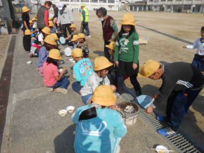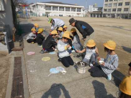 3年生が、社会科の昔のくらしについて学習しました。地域の老人クラブの方から昔によく家庭で使われた道具について学びました。七輪を実際に使い方を教わり、炭火でおもちを焼きました。火をおこすことの経験がない児童がほとんどですので、とても関心を持って取り組んでいました。