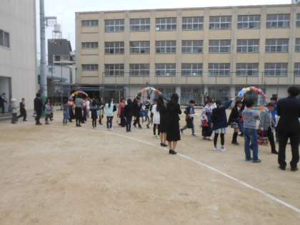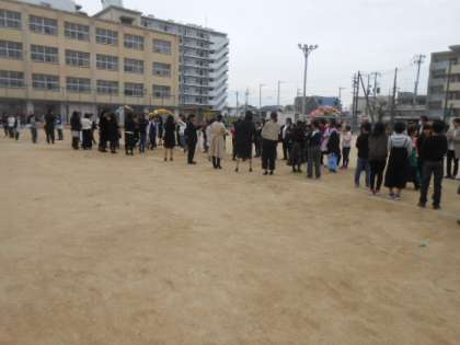 式の終了後、校庭での地域来賓、保護者、家族、在校生、教職員の花道を拍手で祝福を受け、学校を後にしました。