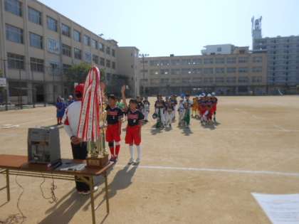 22日(日)大隅東連合子供会キックベースボール大会が、快晴のもとで開催されました。今年は、江口チーム、合同Aチーム(第四・南一荘園)、合同Bチーム(第六・市営南江口・瑞光荘園・ローズ荘園)の3チームの総当たりの対戦です。