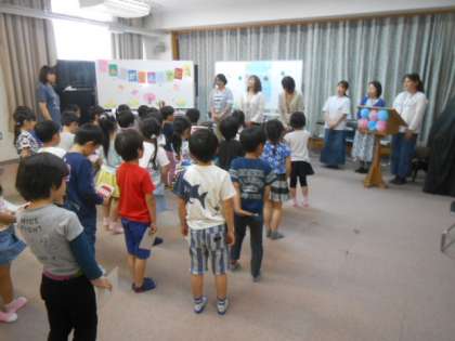 1年生は、図書館ボランティアさんの朗読が始まると、おはなしの世界に引き込まれて楽しんでいました。終わったあと、おはなし会でお世話になった図書館ボランティアさんに感謝の気持ちを込めてお礼を言いました。
