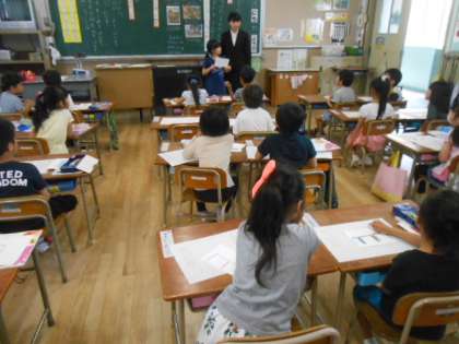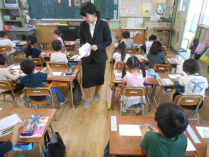 1年生が国語科で単元「ともだちに はなそう」の学習をしています。今日の授業では、生活の中で話したいことを見つけ、発表の仕方を考えました。授業のまとめには、学級のみんなの前で「わたしは、○○を見つけました。」と大きな声でしっかりと発表ができました。