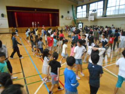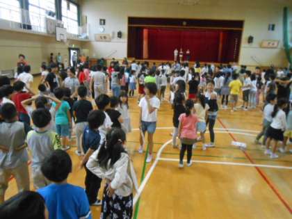 今朝の児童集会では、先日の全校遠足でのオリエンテーリングに関する○×クイズを楽しみました。