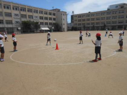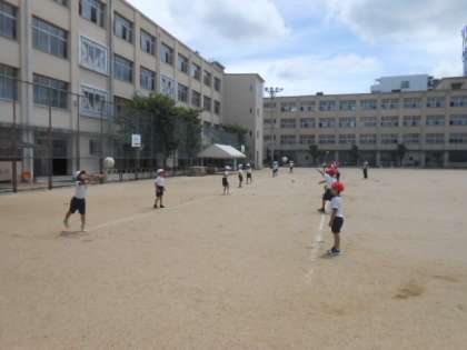 2年生が、運動場と体育館でボール投げ遊び(運動)の学習活動をしました。