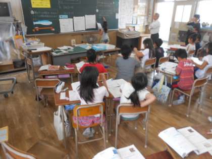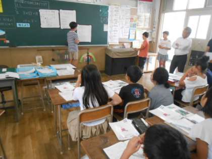 4年生が算数科で「わり算の筆算」を学習しています。2〜3ケタ÷1ケタの筆算のしかたを学習し、14日の5時間目は、倍を求めるわり算について学習しました。