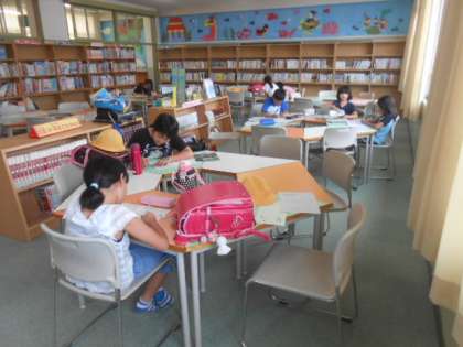 図書室で放課後ステップアップ教室を毎週火曜日(1・3・5年)と金曜日(2・4・6年)に開設しています。児童は、宿題や復習問題、または自由研究、読書などに取り組んでいます。