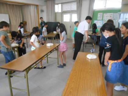 本日2.3時間目に4年各学級が、プログラミング体験の授業を受けました。大阪府立大学工業高等専門学校の金田忠弘先生を招いて、4年生児童が、ロボットを使ったプログラム学習「プログラムを組んでロボットを動かそう」に取り組みました。