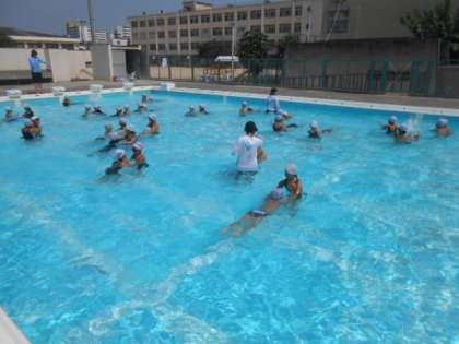 1年生が、プールで1学期の最後の体育学習「水遊び」を楽しみました。