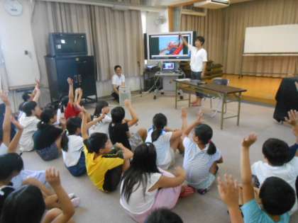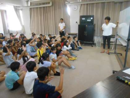 6年が、トップアスリートによる「夢・授業」で、アテネオリンピック銅メダリスト、元競泳選手の中西悠子さんを招聘して、講演と実技指導をしていただきました。