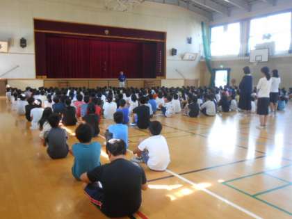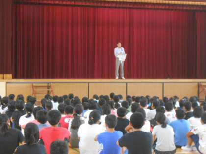 さて、37日間の長い夏休みが、始まります。よりよい過ごし方をしてほしいと思います。まずは、命を大切にする。安全な暮らしを心掛けましょう。祖先から受け継がれて、いただいた大切な大切な「命」です。自分の不注意で、あるいはきまりを守らなかったために、「命」をなくすことがないようにしなければなりません。もちろん、自分の命と同じように人の命を奪うことは絶対いけません。また、人にいやなことをしたり、言ったりしてもいけません。もちろん、いじめは絶対にいけません。