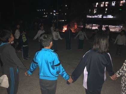キャンプファイヤーでは、人間電気大実験ゲーム、猛獣狩りゲーム、じゃんけん列車、進化じゃんけんなどを楽しみました。係が中心になり、仲良く盛り上げてくれました。