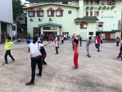 6:00起床、6:30朝の会、朝食をみんな元気にすませ、これから、オリエンテーリングに出発します。