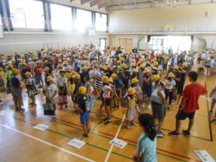体育館に避難した後も集団で下校するまで、支持をしっかり聞き、班でまとまった行動ができました。