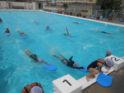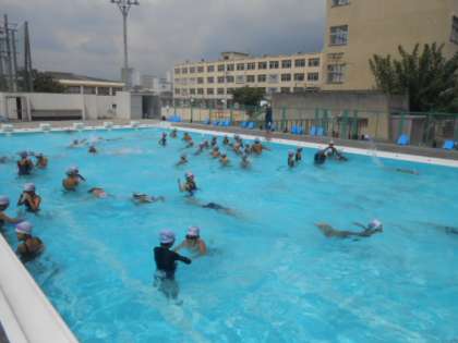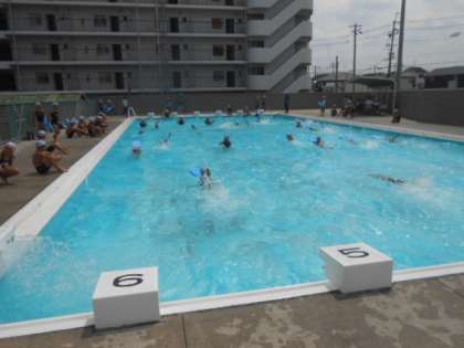 3,4年生が3時間にプールで久しぶりの水泳学習を楽しみました。