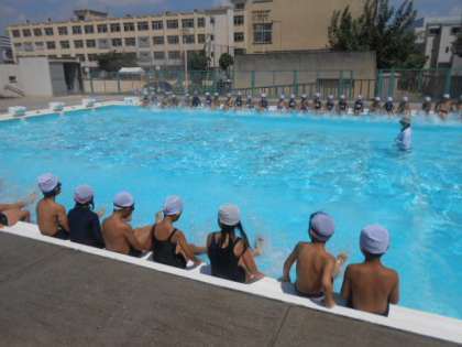 1年生は、水遊びを通して、水中での身体活動を楽しむことがめあてです。