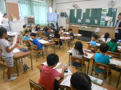 5時間目に1年2組が、特別の教科「道徳」の授業をしました。「120てんの そうじ」を教材にして、仕事の楽しさ、働くことのよさを知り、みんなのために働くことについて学びました。クラスでの自分の仕事について気づいたことや考えたことをワークシートに書いて発表できていました。
