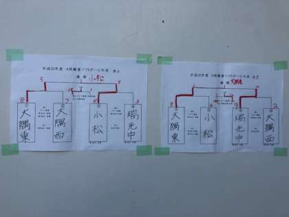 決勝戦では、男子は小松小学校に敗れましたが、随所に好プレーて盛り上がる好ゲームでした。女子は、瑞光中学校に攻守で粘り強く戦い抜き見事に優勝しました。おめでとうございます。出場いただいた選手、会場の世話をしていただいたPTA会員の皆様ありがとうございました。
