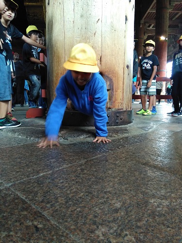 10月16日、5年が、奈良公園へ遠足に行きました。世界文化遺産の東大寺の大仏殿を見学し、お水取りで有名な二月堂、若草山、春日大社、飛火野、興福寺のコースを歩きました。