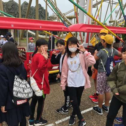 班活動でアトラクションの選択にも友だちに合わせて楽しんでいます。