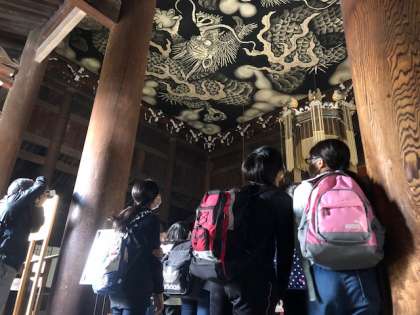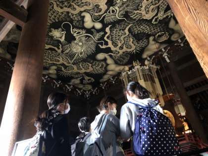建仁寺では有名な風神雷神図や双龍図も鑑賞しました。作品を目の前にして、独特の作風を味わっていました。