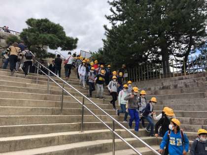 二の丸御殿の鶯張りの長い廊下を通って、歴史遺産から当時の様子を子どもたちは、想像を巡らせたことでしょう。本丸御殿の天守閣跡など広い場内を見学して歴史を堪能しました。