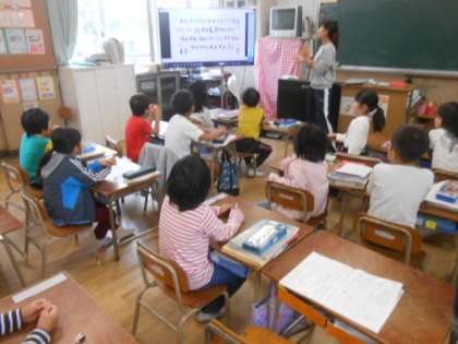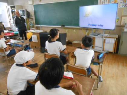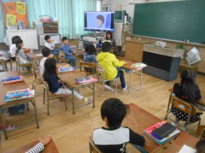 モジュール英語活動は、週1回10分ほどの活動ですが、回を重ねるごとに子どもたちは、英語に親しんできました。英語を映像とともに聞くことで意味を想像して楽しんでいます。