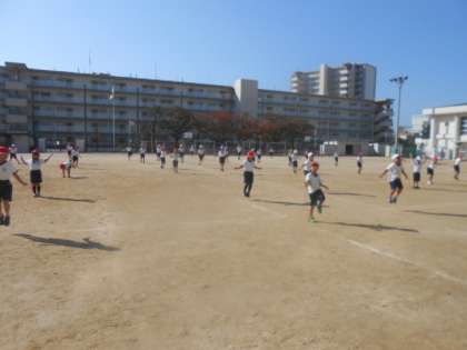 1年生が体育でなわとびに楽しく取り組んでいます。前回し跳びや後ろ回し跳び、あや跳びといろいろな跳び方に挑戦しています。どの子も意欲的でどんどん上手になっています。