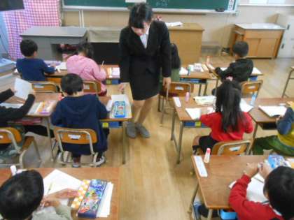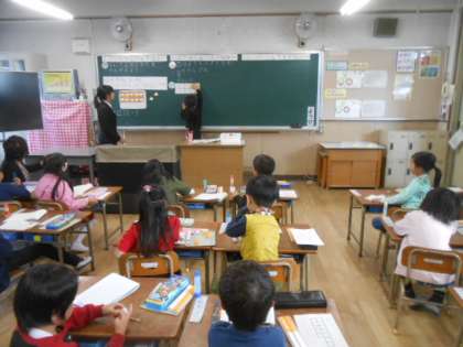 1年生の「ひきざん」は、繰り下がりの計算についてその仕方を理解し、確実にできるようにする大切な学習です。子どもたちは、答えを出す方法について、いくつかの仕方を考えて答えを出し、自分の考えを発表していました。