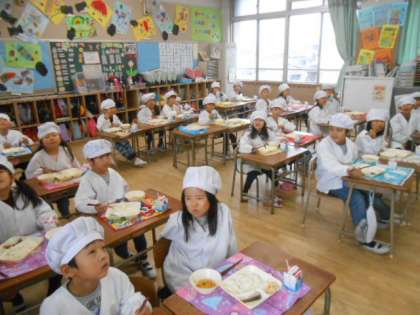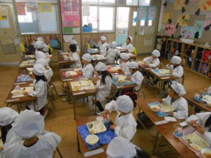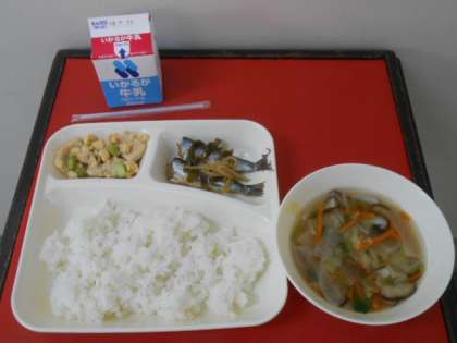 いわしは、小さな骨がたくさんあり、のどに刺さらせないか心配しましたが、1年生の児童は、よく噛んで喫食していました。