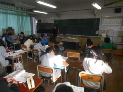 5年生は、家庭科で主食と主菜(みそ汁とご飯)について学習しています。その調理実習をするために調理の仕方と役割分担を話し合いました。児童は、家庭科の調理実習には関心が高く、参考資料を見ながら考え、具体的な調理活動の内容をノートにまとめていました。