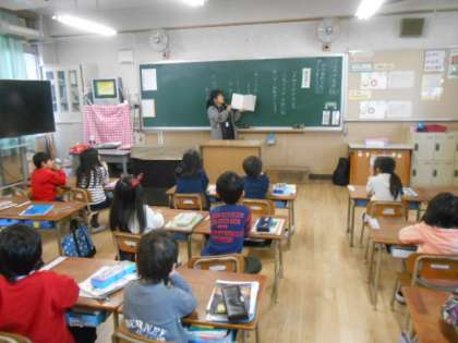 今朝の読み聞かせは、1,2,3年生にしていただきました。