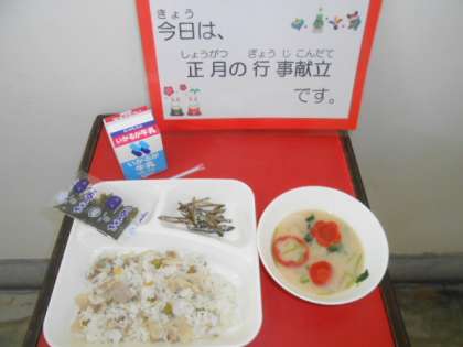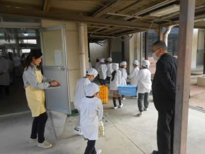 今日から給食が始まりました。各学級の給食当番が、「いただきます。」「ありがとうございます。」と元気なあいさつで調理員さんから食缶を受け取って、教室へ運びました。
