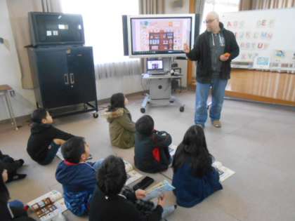 4年1組が、エリック先生と外国語活動で英語を楽しみました。