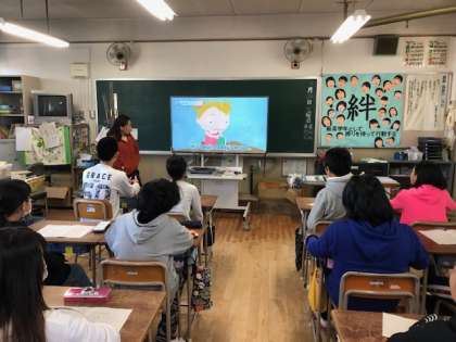 週に10分程度の活動ですが、積み重ねることで高学年の児童は、映像を参考に英語のフレーズを理解できてきました。英語の楽しさを更に感じ取ってほしいと思います。
