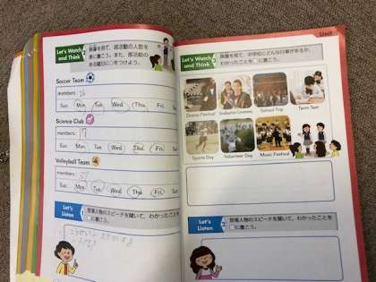 6年生は、中学校には、どんな行事があるのか、楽しみにしている行事名などを英語で学びました。