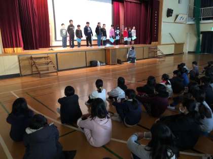 身近な生活の場面や身の回りのことで、環境を守る行動や態度について映像を使って低学年にもわかりやすく発表してくれました。