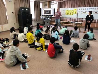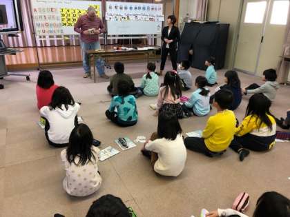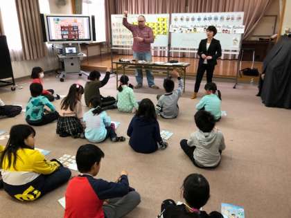 エリック先生からの今朝の気分についての問いかけや曜日についての問いかけなどに、英語で答え会話を楽しんで英語に親しんでいます。