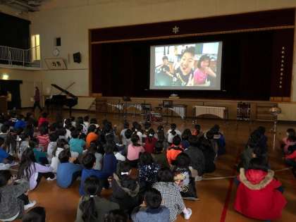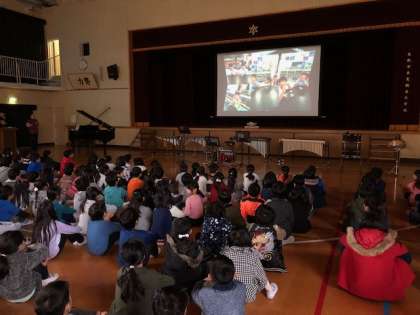 科学クラブは、「3Dドラゴン」「空気砲」「べっこう飴」「飛行リング」「スライム」「割れないシャボン玉」など様々に取り組んだ活動を映像で紹介してくれました。