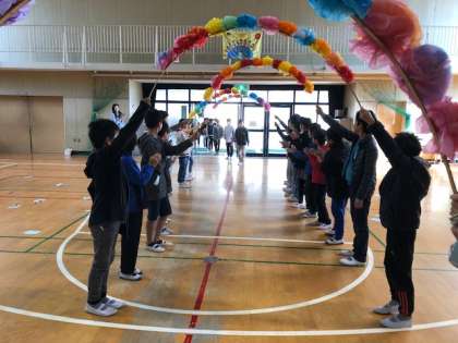 2時間目、講堂で6年生の卒業を祝う「卒業おめでとう集会」をしました。その様子をフォトギャラリーで紹介します。