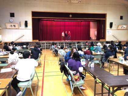 5・6時間目、6年生が保護者と茶話会を楽しみました。いろいろな出し物で場内をわかしてくへました。その様子をフォトギャラリーで紹介します。