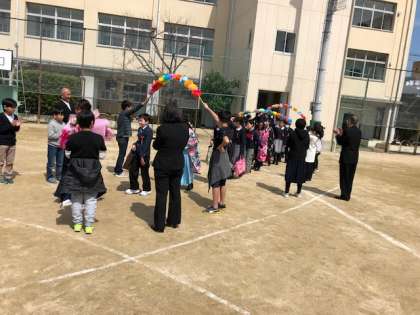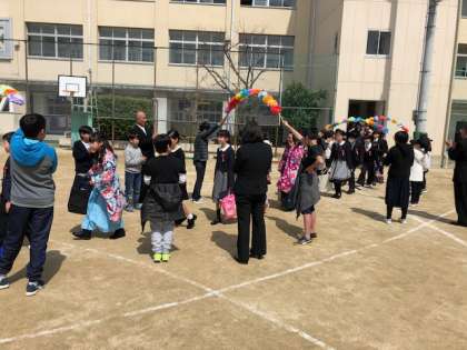 卒業生の新たな門出を喜ぶたくさんの方々に祝福されて、卒業生が、思い出がいっぱいの校庭を後にしました。