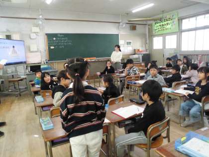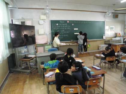 10より大きい数からのひき算の学習です。繰り下がりの計算の考え方を学ぶ手がかりとして、ブロックを使いながら、みんなで考えていきました。