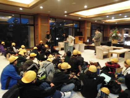 入舎式を行いました。ホテルの方々に「お世話になります」「よろしくお願いします」という気持ちを伝えました。