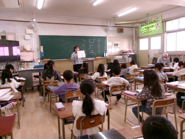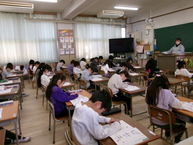 「口」「七」「子」という漢字の学習です。「おれ」「まがり」「そり」に気をつけながら丁寧にノートに書き写していきました。