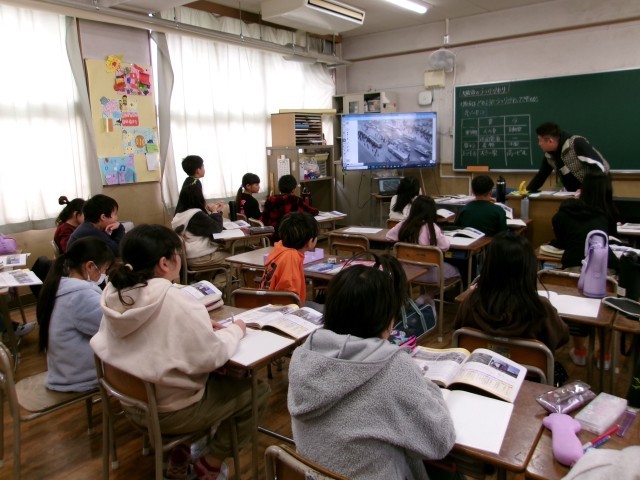 昔の大阪市の駅や街並みの写真を見ながら、今とどう違うのかを確認していきました。子どもたちには、色々と発見、気づきがあった様子でした。