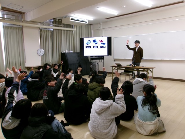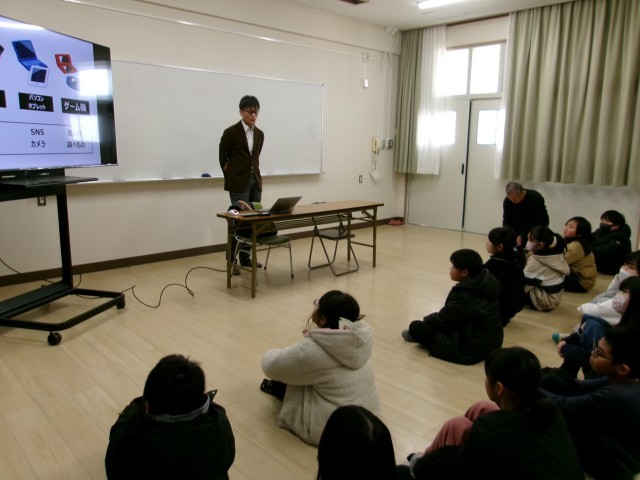 IT企業のSCSKの方に来校いただき、5年生、6年生の児童に向けて、スマホの正しい使い方、ネット活用の注意点について話をしてもらいました。「ネットへの投稿」「ネットの使い過ぎ」「ネット上の偽情報」をテーマとしたケース動画を視聴しながら、子どもたちに適切な利用方法について考えてもらいました。ぜひ、ご家庭でも情報機器の活用ルールについて子どもたちとお話をしてもらえればと考えております。
