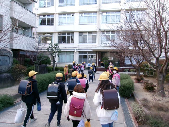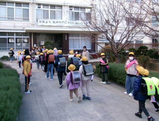 今週はあいさつ週間です。赤い羽根の共同募金の募金箱を手に、担当委員の児童たちが元気よく挨拶してくれています。