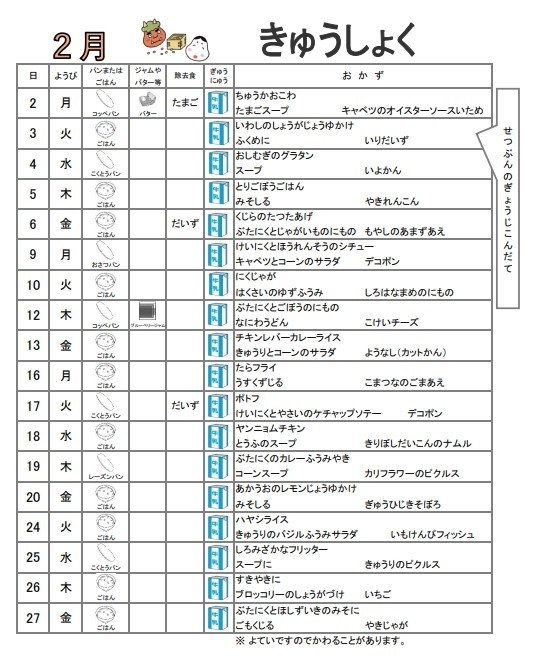 令和8年2月 きゅうしょくだより