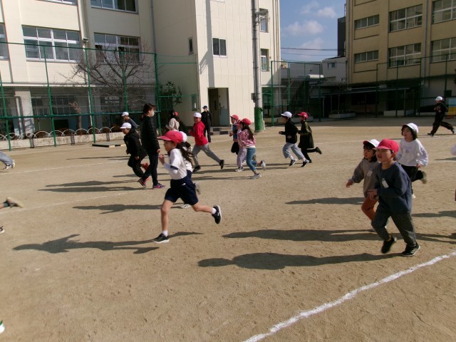 今日から、かけ足週間です。15分の中休みに全校児童が校庭に出てきて走りました。寒空のもとでもみんな元気いっぱいです。